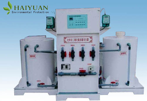 HB系列學法二氧化氯發生器采用兩種化學法反應方法產生二氧化氯。
